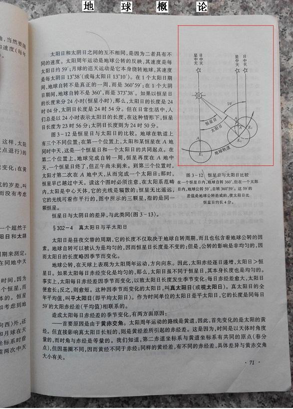 太阳日与恒星日是地球自转问题,教材却把地球的自转问题,标注在地球公转的方向。无疑是表示单位时间地球公转的角度问题。误导莘莘学子。
