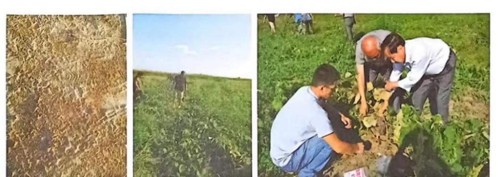 盐碱地治理前状况 治理两年半后的景观 作者(右一)与刘兴土院士(中)考察治理后的盐碱地