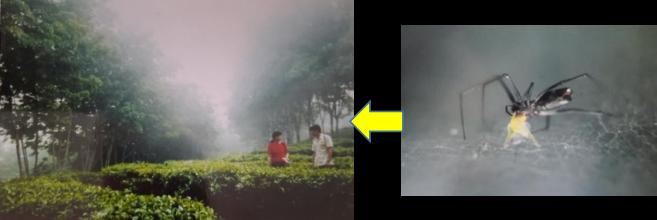 虫害是农业生产中一大问题,采用生命群落结构调控技术,把茶园组建成“茶蛛蝉生命群落”(图4),结果,为了防治茶园最大害虫小绿叶蝉,每年需打农药十几次的茶园传统管理,通过人工生命群落构建,改变成了几十年不打一次农药的《茶-蛛-蝉》生命群落茶园,找到了生命群落结构调控技术防治虫害的可行性。